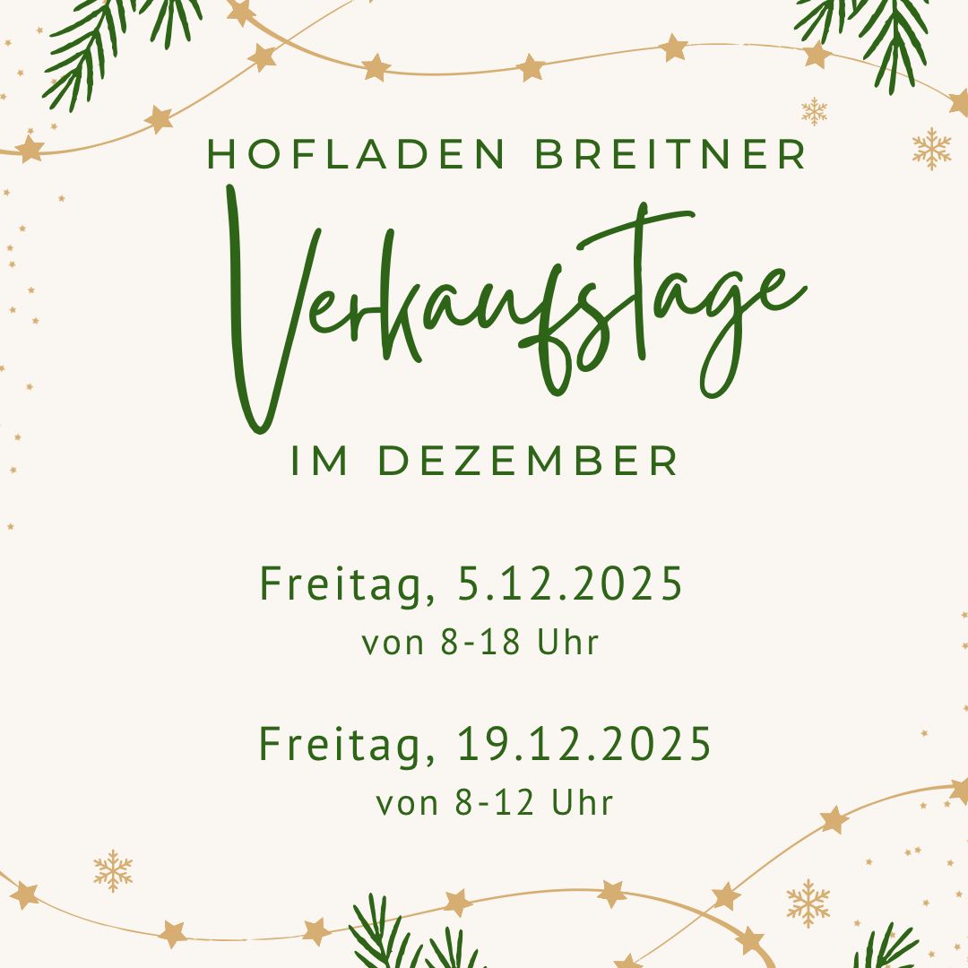 Im Dezember öffnen wir zweimal unseren Hofladen mit persönlicher Bedienung für euch.